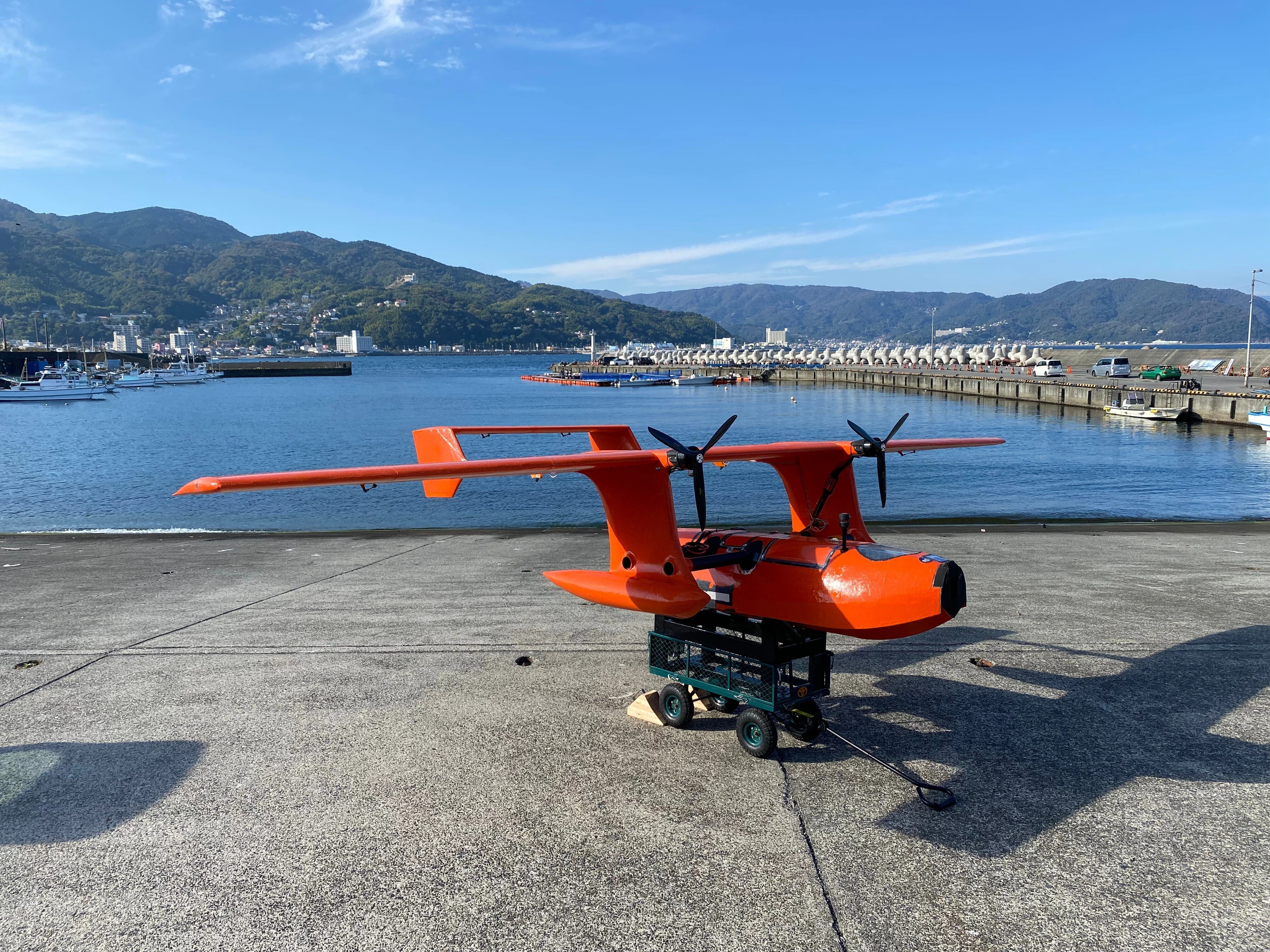 そこで固定翼機の開発をしたいと思ったのですが、日本ではそもそも広い平地が少なく、滑走路を確保するのは至難の業。でも河川や湖、海などの水辺なら日本中どこにでもあるということで、水上離発着型の飛行艇ドローン「HAMADORI」の開発をはじめました。