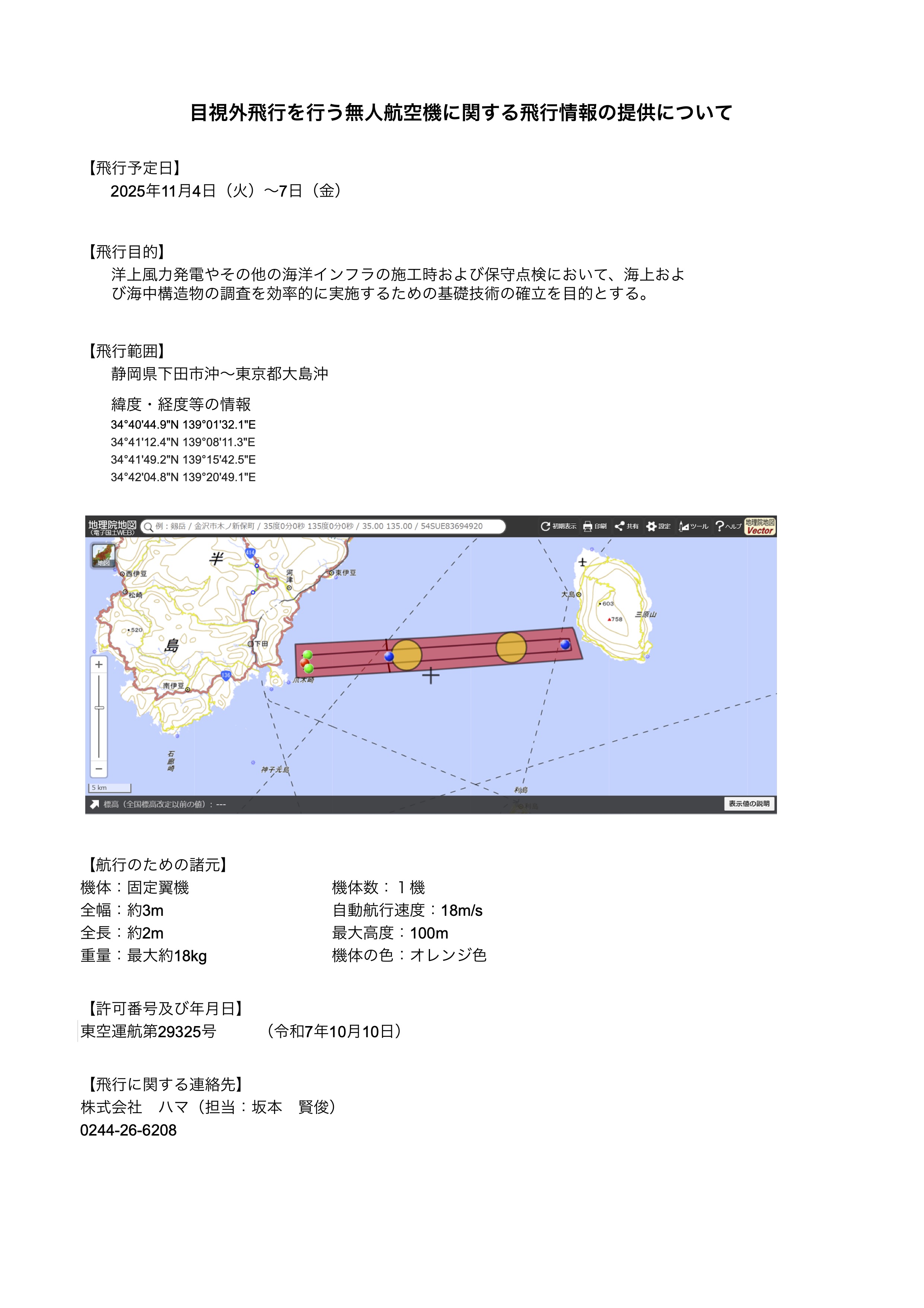 以下の内容で行う目視外飛行について、お知らせいたします。